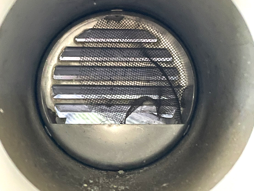 - 屋外側換気口の網が外れたまま